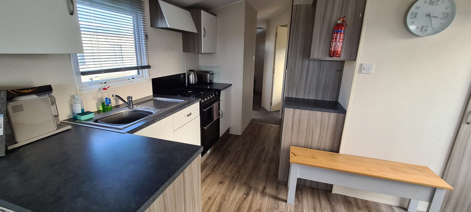 Situated in Kintyre View a 2-minute walk from the beach with amazing views over the isle of Arran. Full Wrap Around Decking with patio furniture. Our 3-bedroom, 2 bathroom caravan sleeps 7 people, with a pull-out bed in the lounge if required. FREE WIFI with a 42″ smart television in the lounge and 32″ smart television with in master bedroom. All beds are made upon arrival, we also include hand towels. We leave tea, coffee and sugar for our guests as well as tea towels, toilet rolls, hand sanitiser, washing up liquid, cleaning products and bottled water.